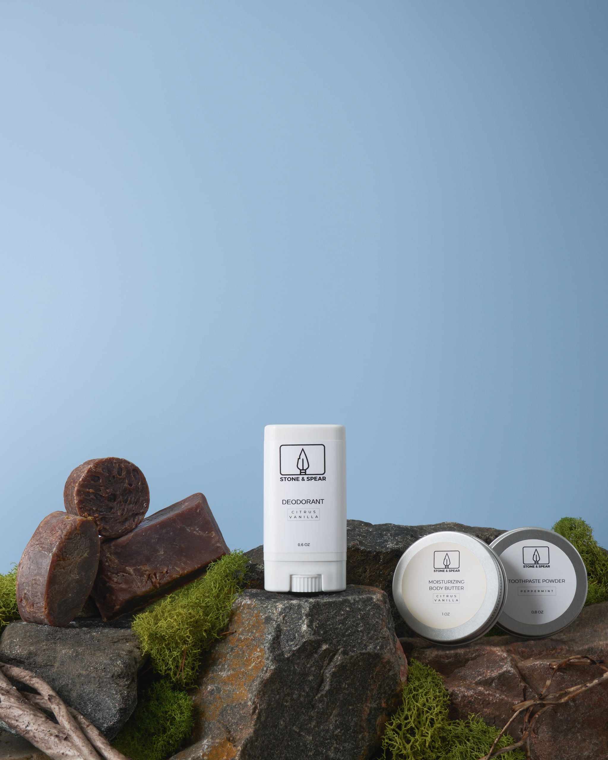 This bundle contains mini travel sample size versions of the following 6 best-selling 100% natural products that most of us use every day: Moisturizing Body Soap, Tallow Shampoo Bar, Natural Deodorant, Moisturizing Body Butter, Natural Toothpaste Powder, and Exfoliating Face Cleanser.